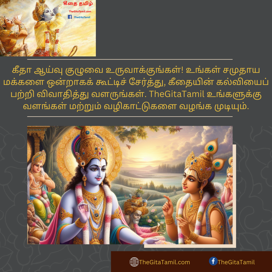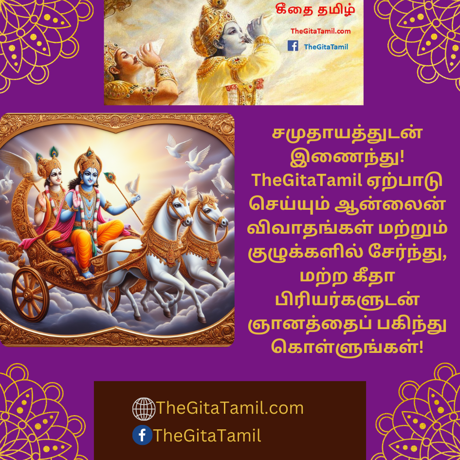 3. வாழ்க்கையின் சிக்கல்களை வழிசெலுத்துதல்: தர்மம் (நீதி), கர்மா (செயல்கள் மற்றும் விளைவுகள்) பற்றிய தெளிவைப் பெறுதல் மற்றும் ஒவ்வொரு சூழ்நிலையிலும் நோக்கத்தைக் கண்டறிதல்.